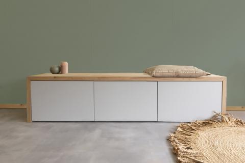 Besta tv meubel - eiken houten plank De trend van dit moment, welbekend onder de naam #ikeahack! Geef het welbekende Ikea Besta tv-meubel een finishing touch met een stoere eikenhouten plank.