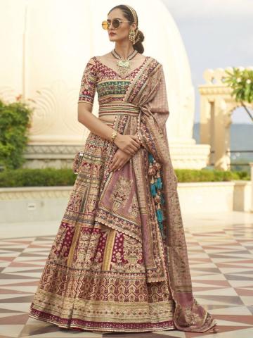The beautiful net material lehenga is intricately worked with sequin work, thread embroidery, and zari work, adding a touch of elegance and charm.Paired with a pink choli in soft net embellished with sequin work and a soft net dupatta with embroidery work in pink color, this outfit is a true mast